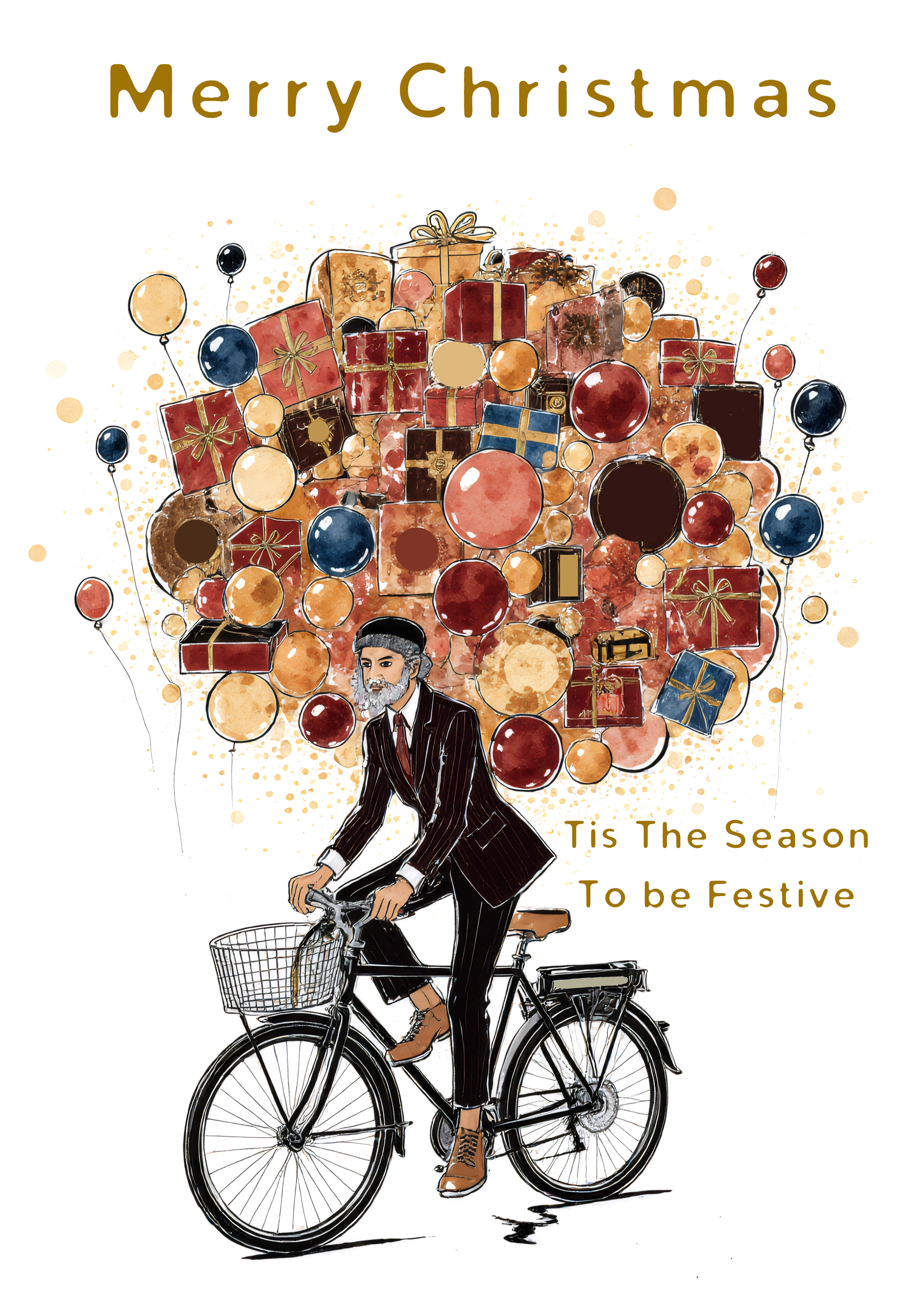 Tis the season to be festive! Spread the cheer and celebrate the festive season in style. This card highlights this urban version of Santa; representing the parents that make Christmas so special. Send this card to someone you love & appreciate this Christmas!