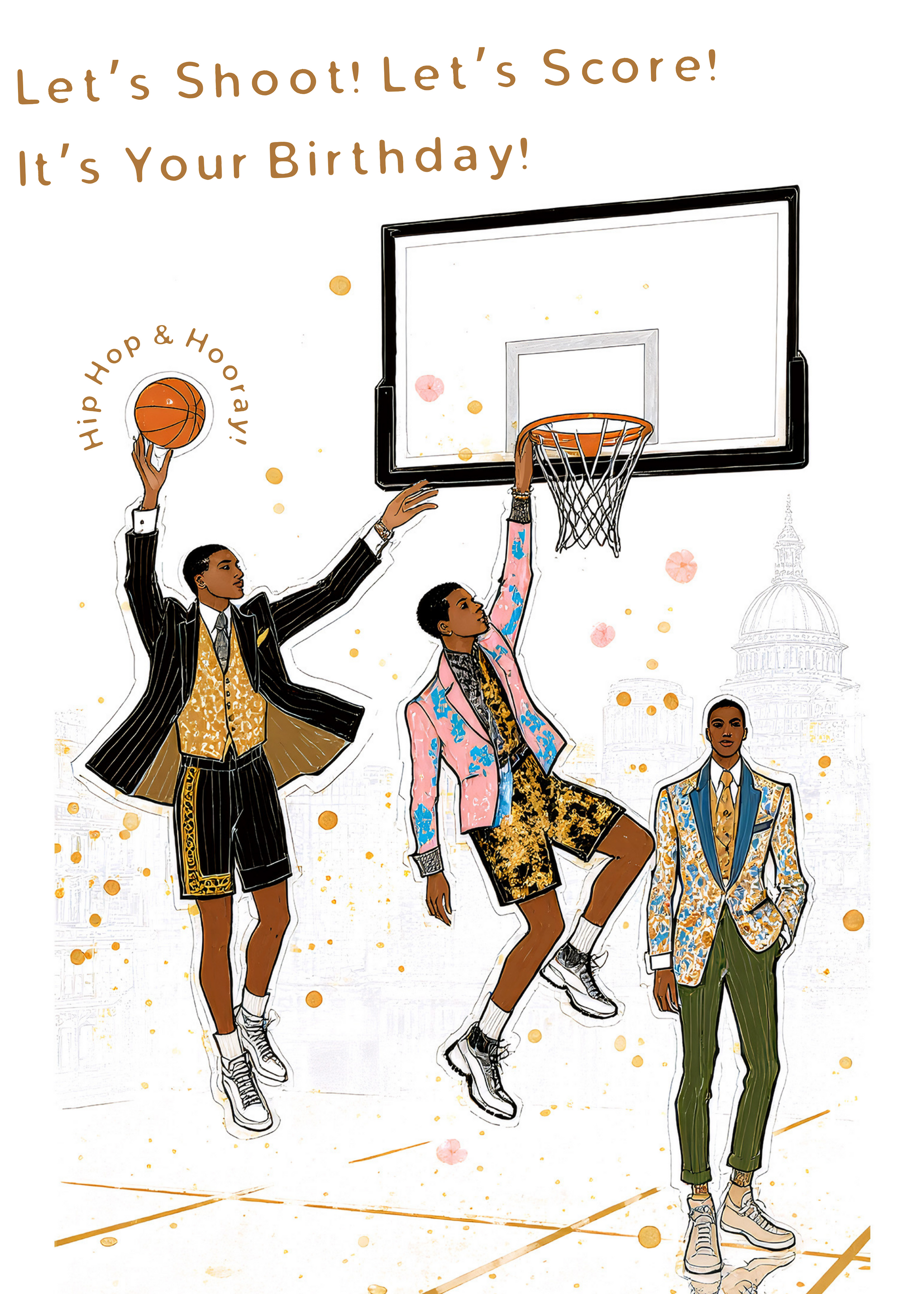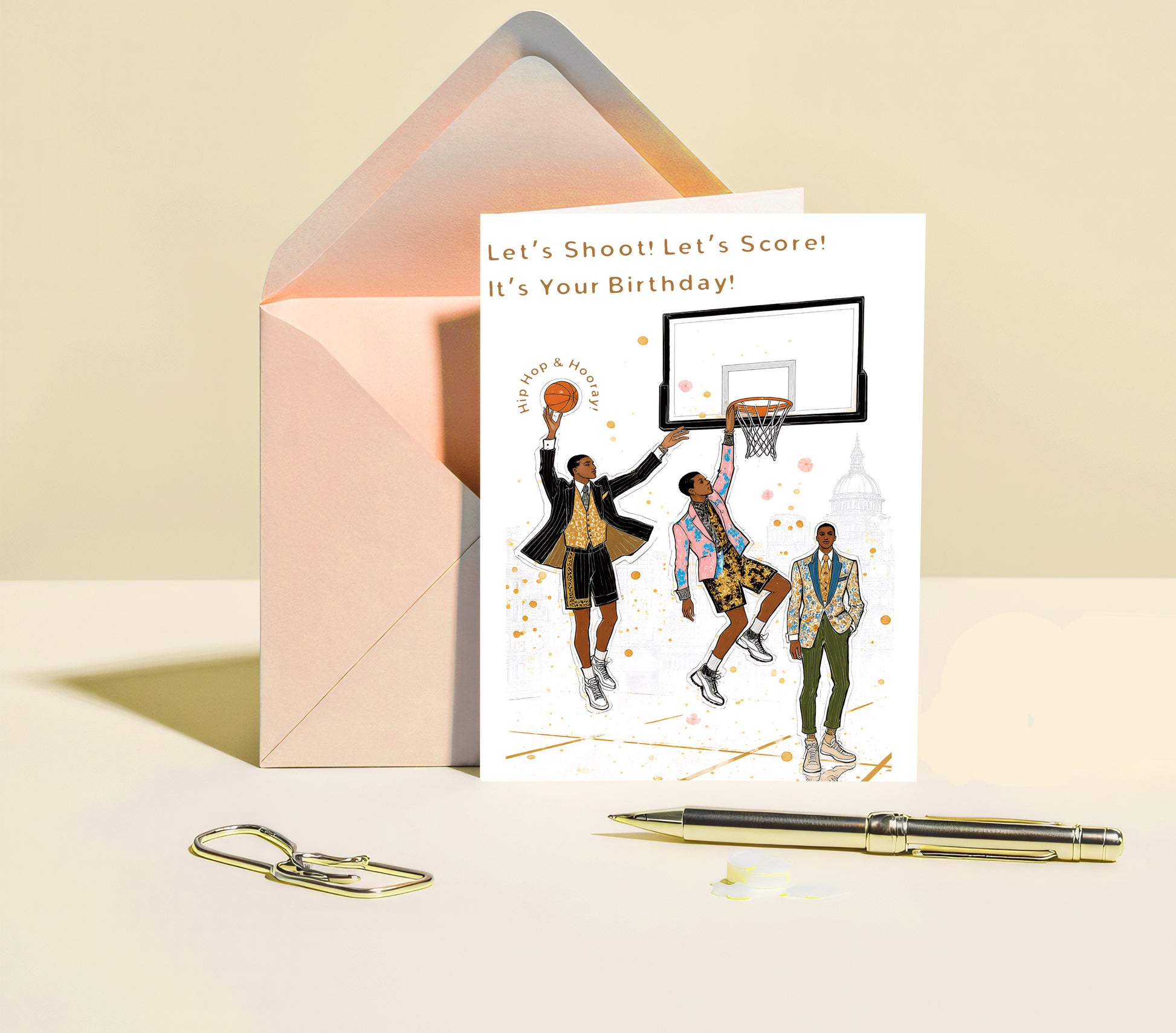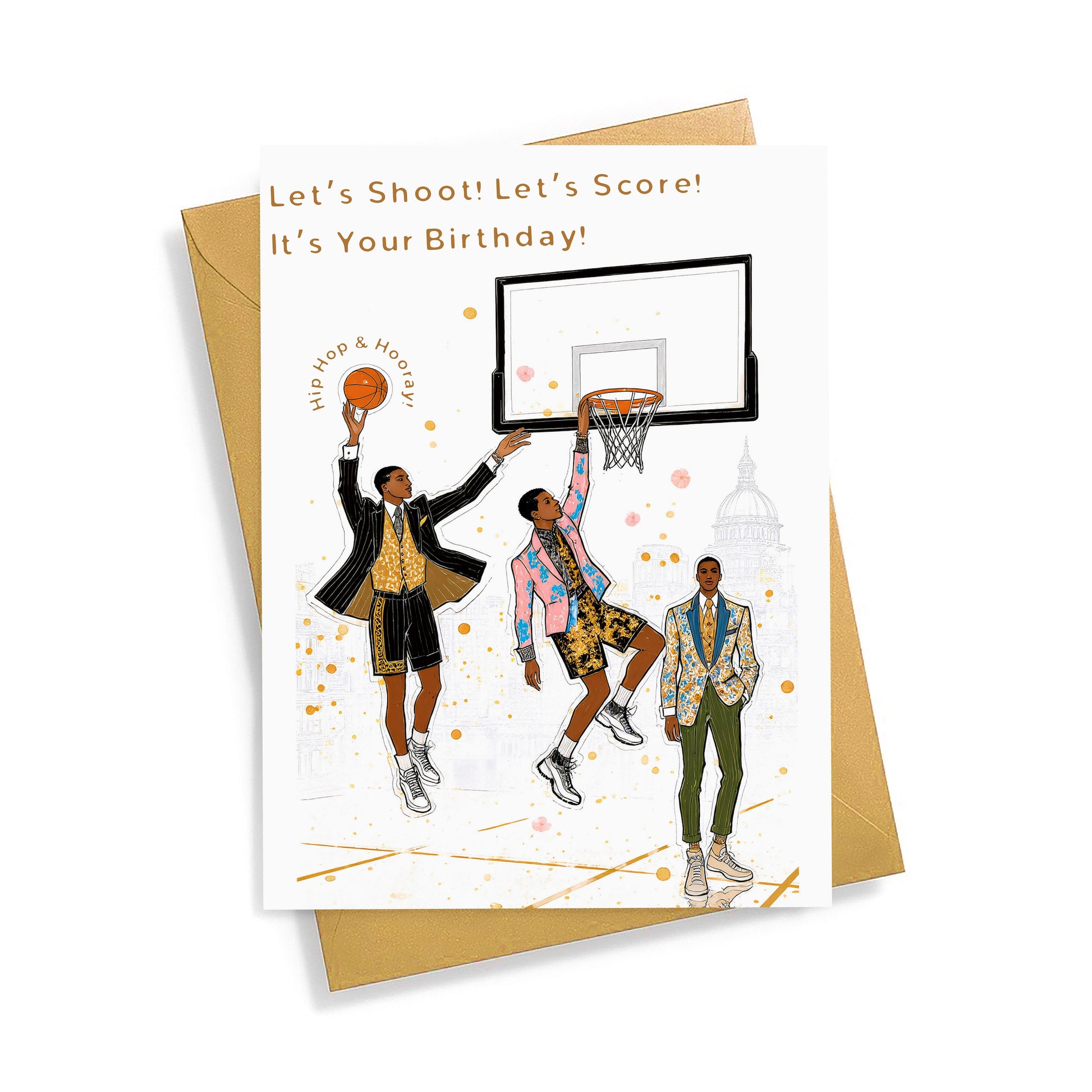 Score the day with this unique basketball card! Perfect for anyone's birthday this card showcases how sports and fashion can intertwine.