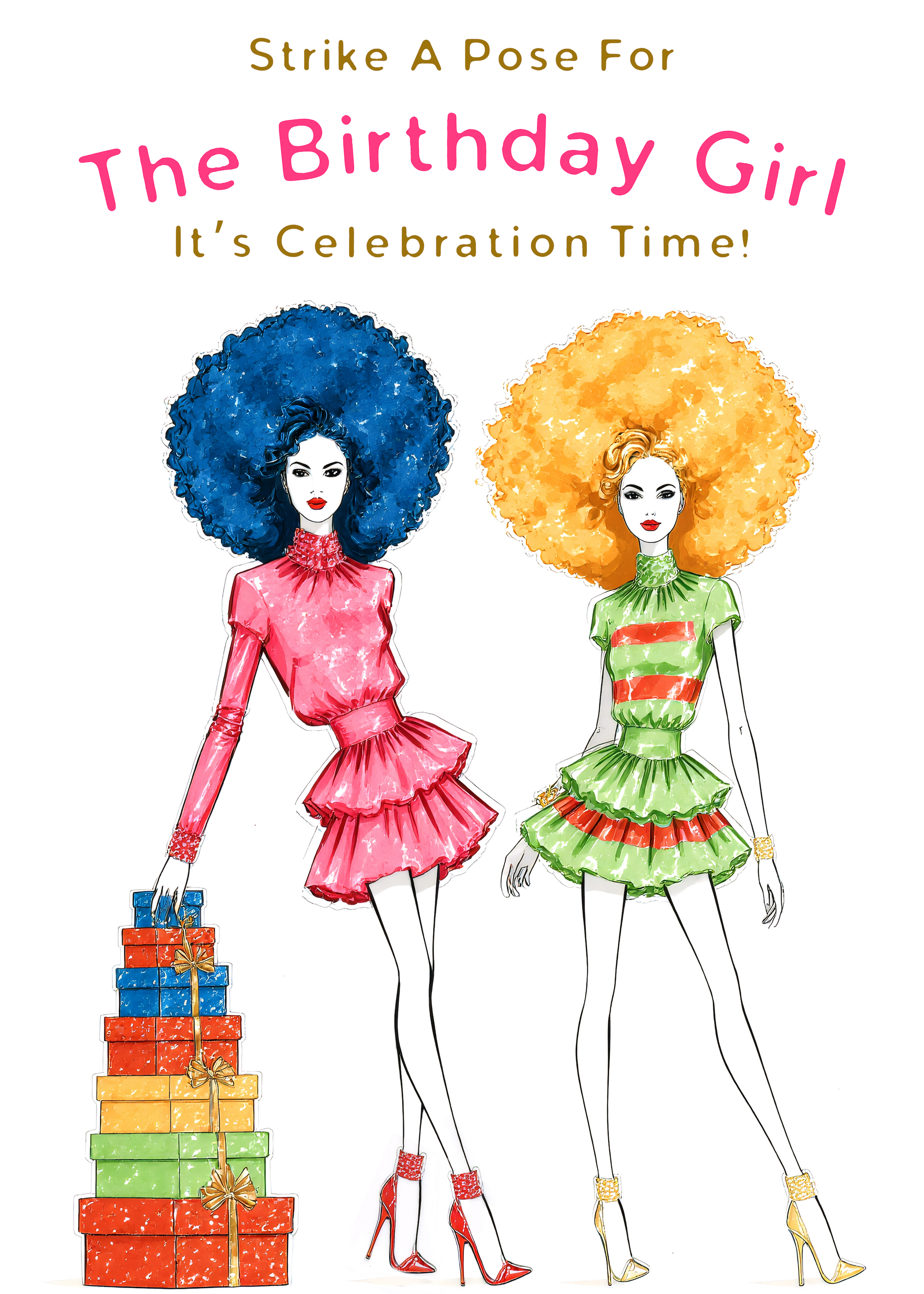 Strike A Pose For The Birthday Girl is a striking diva disco card enabling such a cool way to celebrate your birthday!