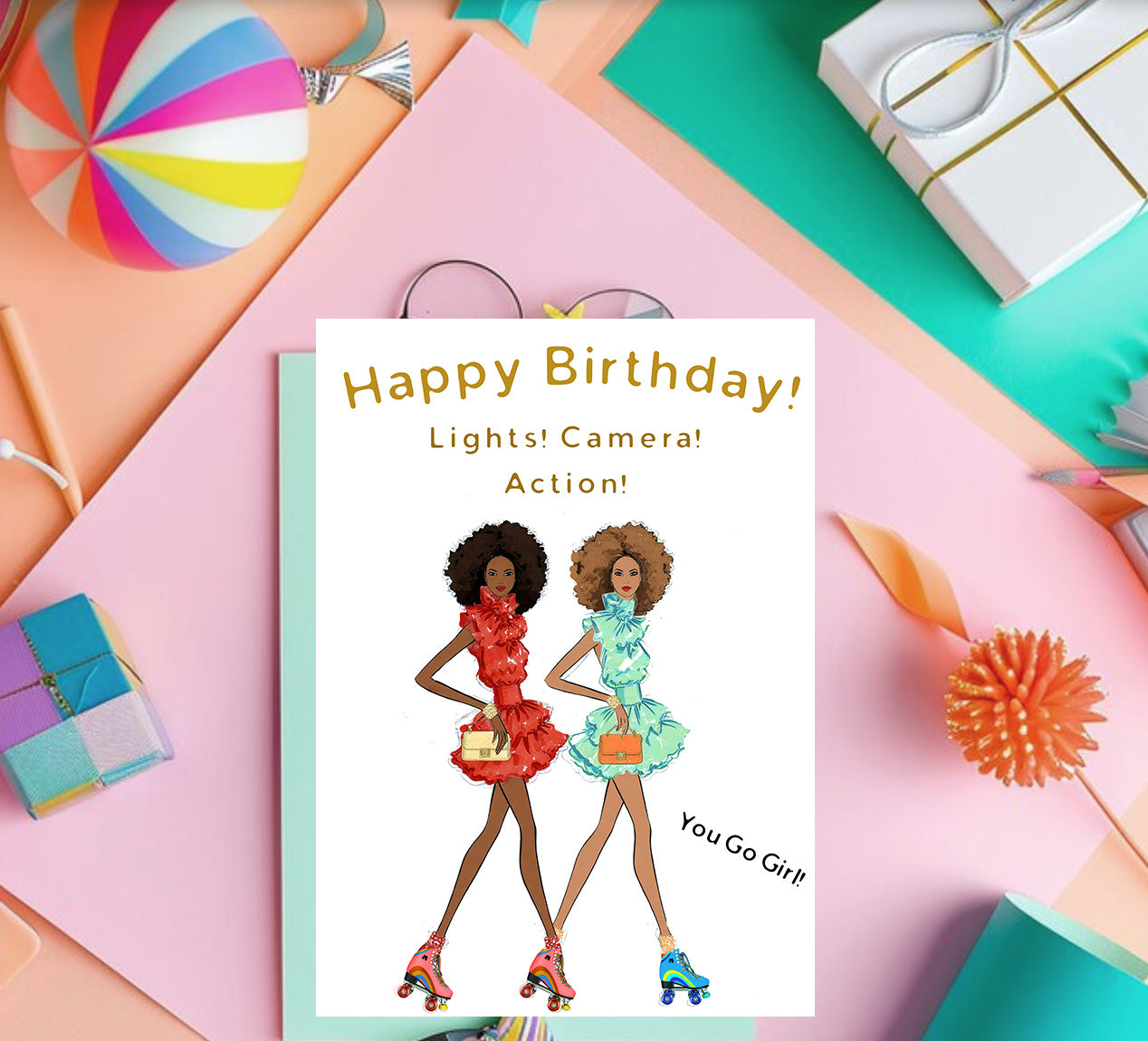 Lights Camera Action Happy Birthday Card, allows you to serve your birthday in style, and glamour.