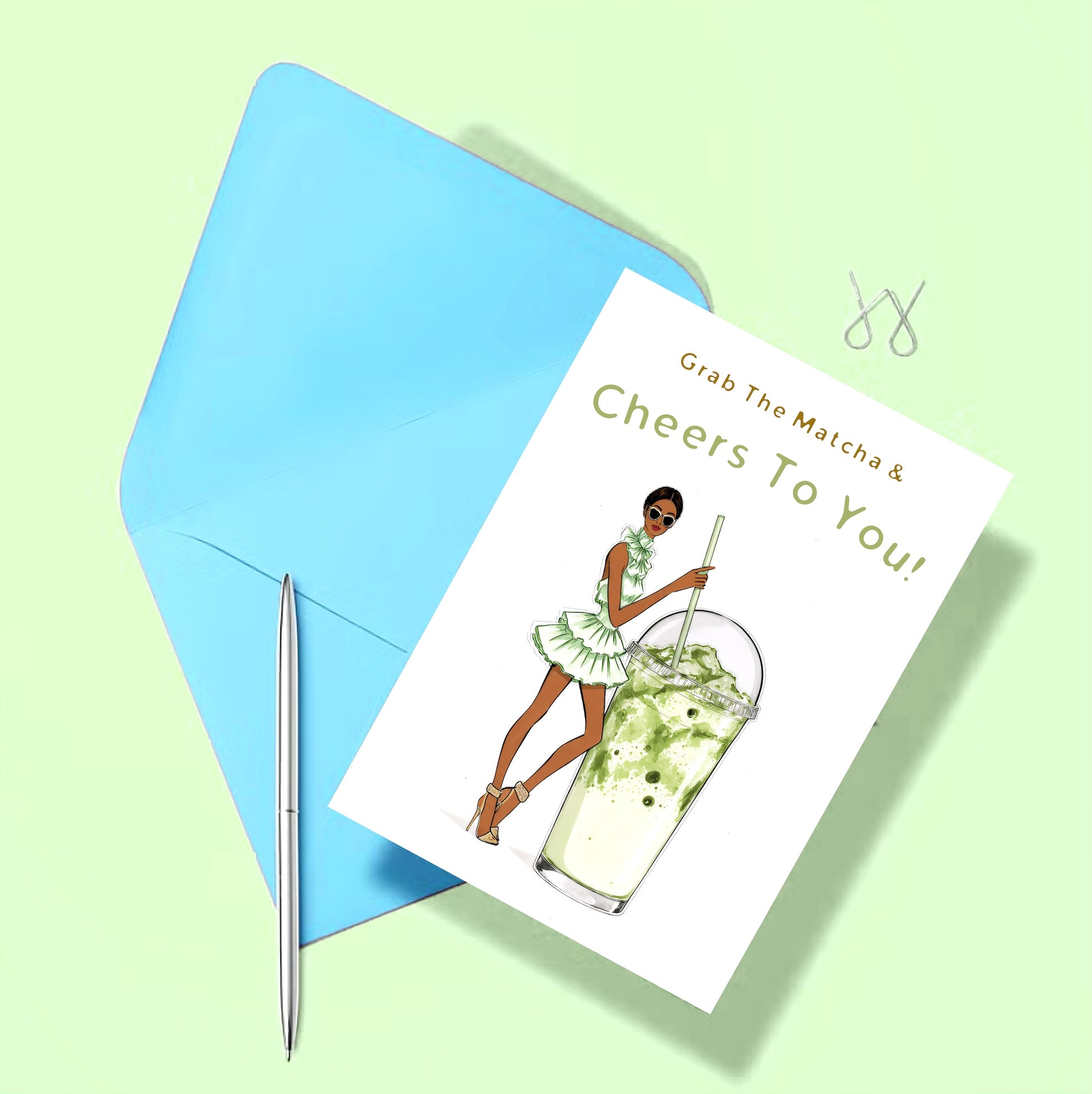 Celebrate a special matcha-loving someone with this unique matcha card! Perfect for those that a love cheeky matcha latte, gift them with this celebration card. Great for a birthday, graduation, promotion, or a personal win this matcha-licious card makes someone feel the cheer!
